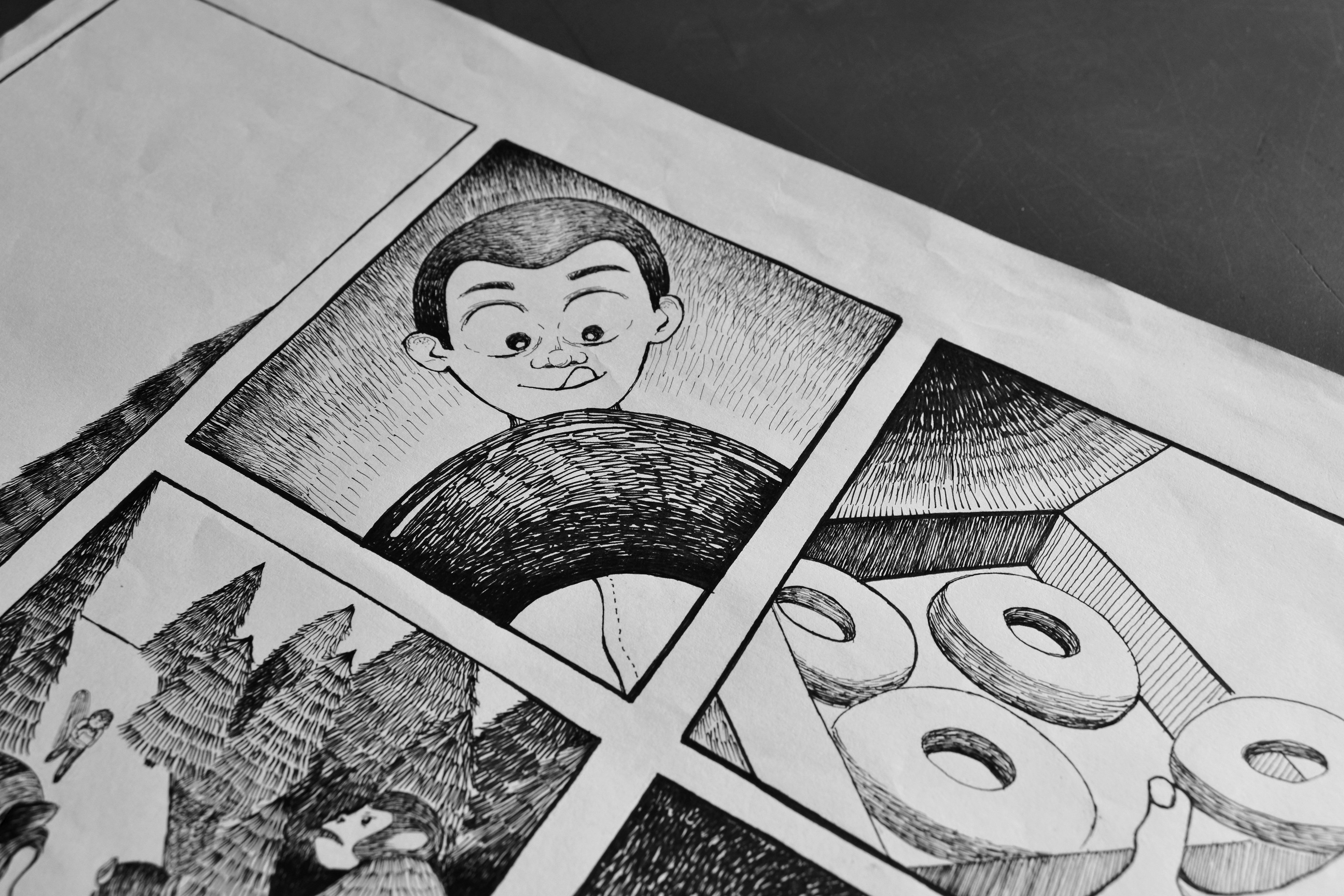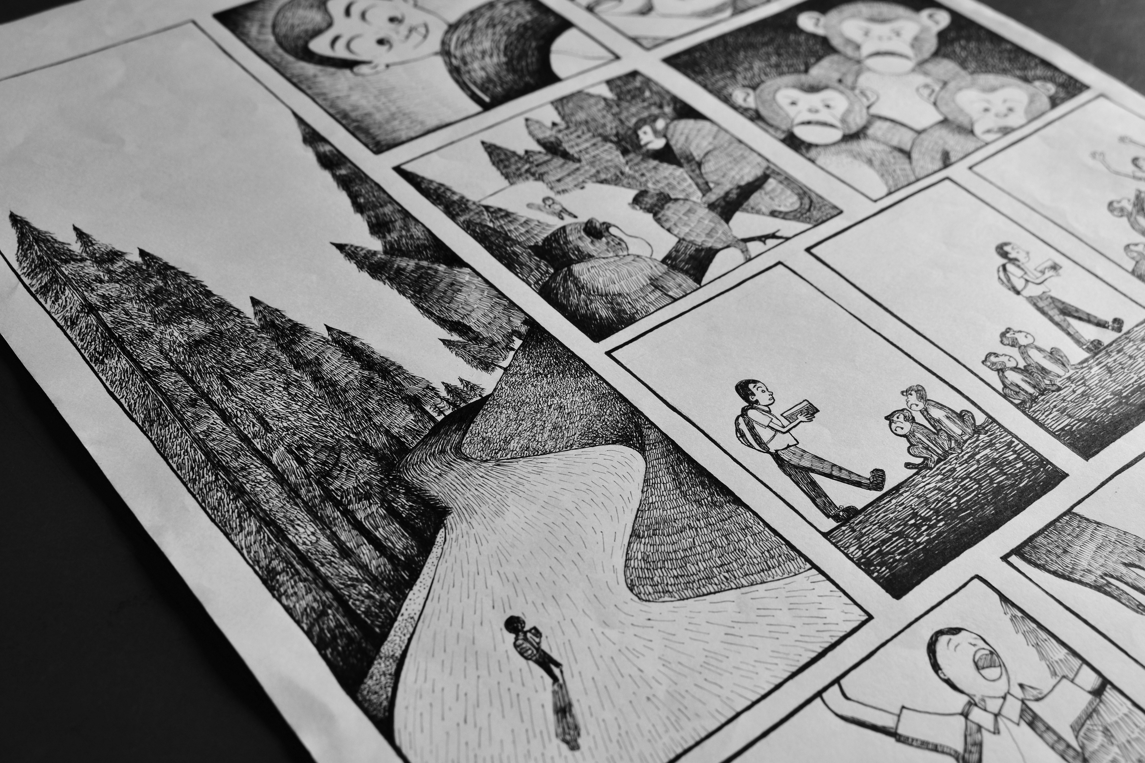 An A3 sized comic panel I worked on as a part of a one week workshop on sequential narratives. The workshop was conducted by Mr. Arjun Gupte and Mr. Dhiman Sengupta at the National Institute of Design, Ahmedabad.